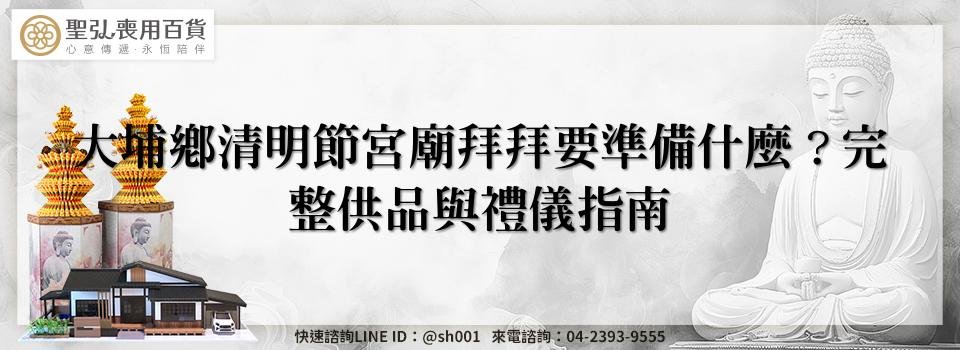 在準備大埔鄉清明節宮廟拜拜時,務求掌握供品的傳統象徵與實際用途,並尊重廟方規範與在地禁忌,能讓儀式莊重而有序。若需協助供品組合或禮俗諮詢,聖弘喪用百貨提供完整的喪用百貨整合與民俗用品選配服務,專業團隊以尊重傳統與體貼家屬為核心,依需求提供合適建議與完善準備,歡迎依意願洽詢,由專人說明與協助。