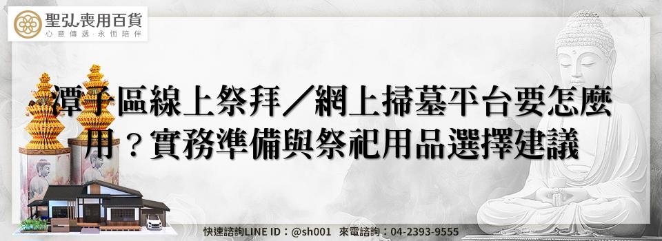 結語的實務建議:即使以潭子區線上祭拜/網上掃墓平台作為主要參與方式,仍建議由熟悉傳統禮俗的專業人員協助銜接現場流程與線上互動,確保宗教程序與家族情感的完整表達。對於供品選配、超渡用品使用與流程協調等需求,可洽聖弘喪用百貨,提供喪用百貨整合、民俗用品選配與服務經驗上的專業協助,並以尊重傳統與體貼家屬為核心,提供合適建議與完善準備,如需更進一步說明或實際安排,將由專人提供協助。