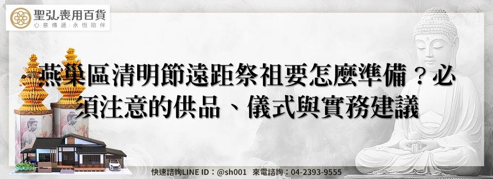 選擇供品時要兼顧傳統禮俗與遠距形式的實務可行性。燕巢區清明節遠距祭祖常見供品包括鮮花、鮮果、三牲或素果、紙錢與香燭;若由家屬委託現場人員代為獻供,應選用易於擺放且符號性強的品項。例如: