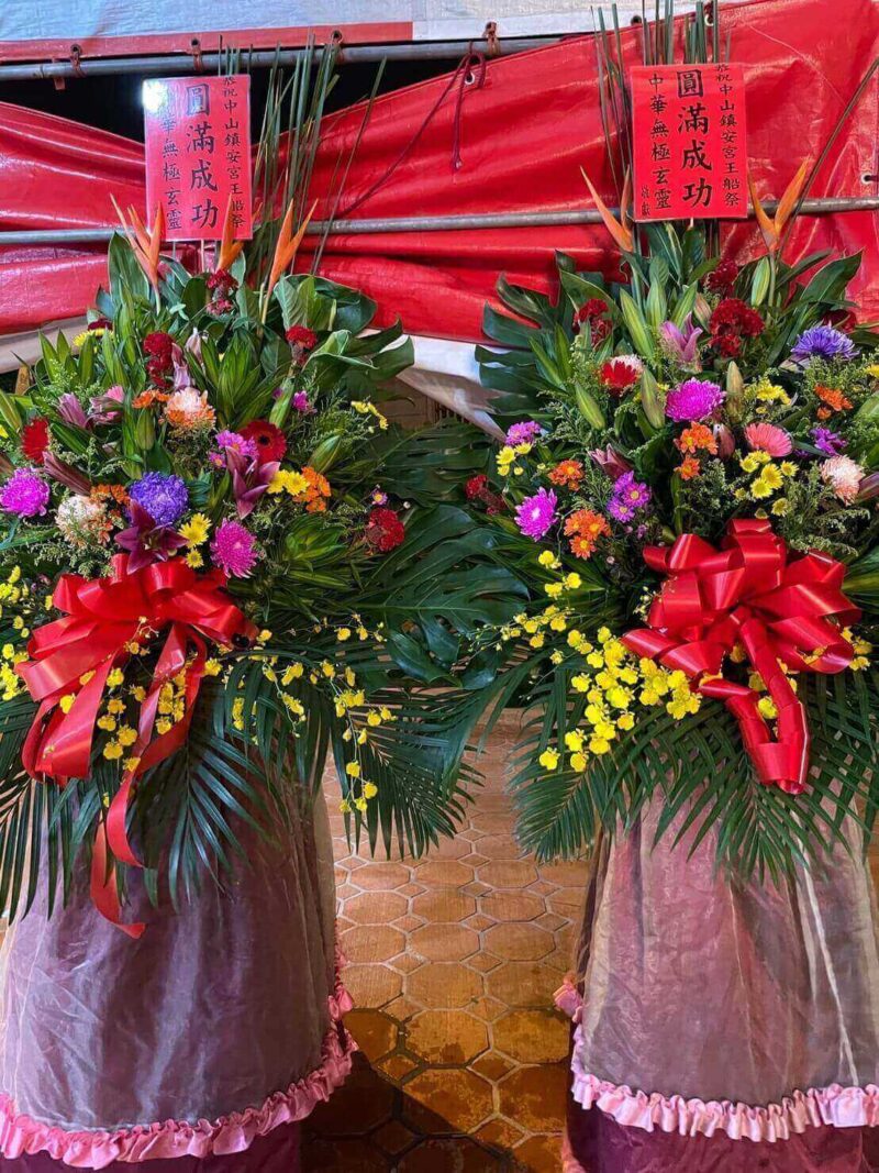 此款為:「祝賀花籃E」款式 花籃用途: 公司開業、店面開幕 答謝神明、慶祝升官 – 花籃含意: 祝賀鮮花象徵美好、平安繁榮之意 送花給親友,將祝福心意傳遞出去