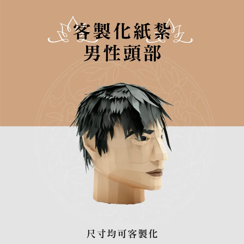 此款為:客製化紙紮男性頭部 ※材質:精緻紙材 ※台灣製造、品質優良可靠 ※紙紮用品附受用紙、封條 ※紙紮屋附地契、女僕、管家、司機 ※適用場地:自宅、棺內、金爐、殯儀館、火化場