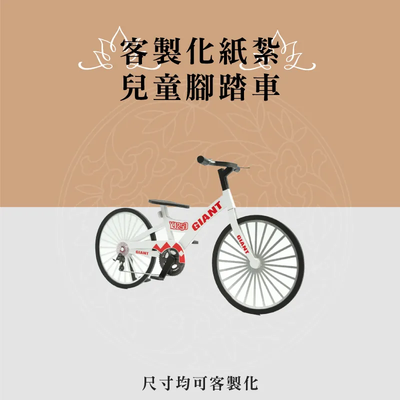 此款為:客製化紙紮兒童腳踏車 ※材質:精緻紙材 ※台灣製造、品質優良可靠 ※紙紮用品附受用紙、封條 ※紙紮屋附地契、女僕、管家、司機 ※適用場地:自宅、棺內、金爐、殯儀館、火化場