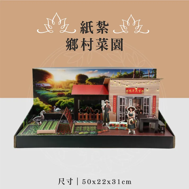 此款為:紙紮鄉村菜園 ※材質:精緻紙材 ※台灣製造、品質優良可靠 ※紙紮用品附受用紙、封條 ※紙紮屋附地契、女僕、管家、司機 ※適用場地:自宅、棺內、金爐、殯儀館、火化場