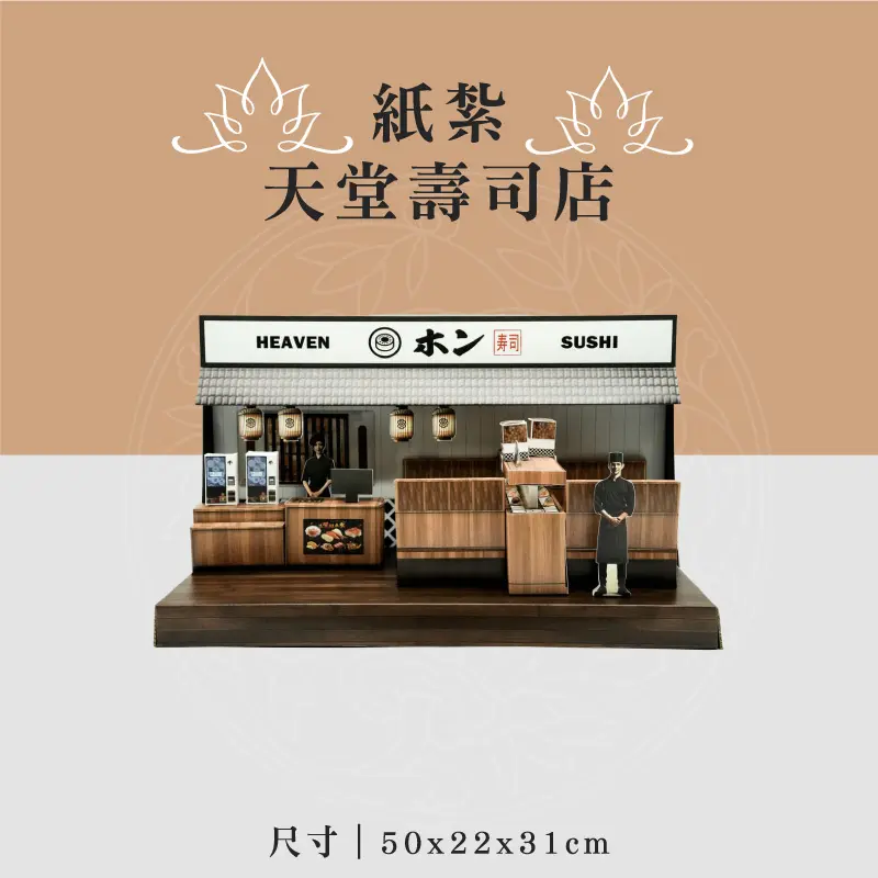 此款為:紙紮天堂壽司店 ※材質:精緻紙材 ※台灣製造、品質優良可靠 ※紙紮用品附受用紙、封條 ※紙紮屋附地契、女僕、管家、司機 ※適用場地:自宅、棺內、金爐、殯儀館、火化場