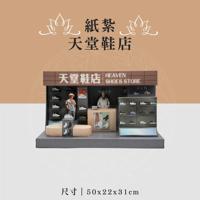 此款為:紙紮天堂鞋店 ※材質:精緻紙材 ※台灣製造、品質優良可靠 ※紙紮用品附受用紙、封條 ※紙紮屋附地契、女僕、管家、司機 ※適用場地:自宅、棺內、金爐、殯儀館、火化場