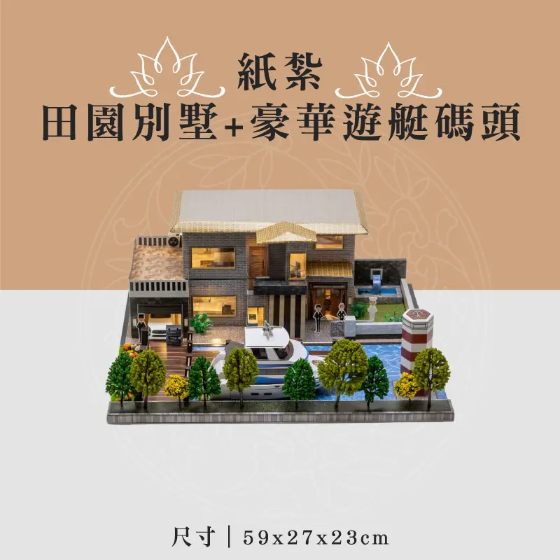 此款為:紙紮田園別墅+豪華遊艇碼頭