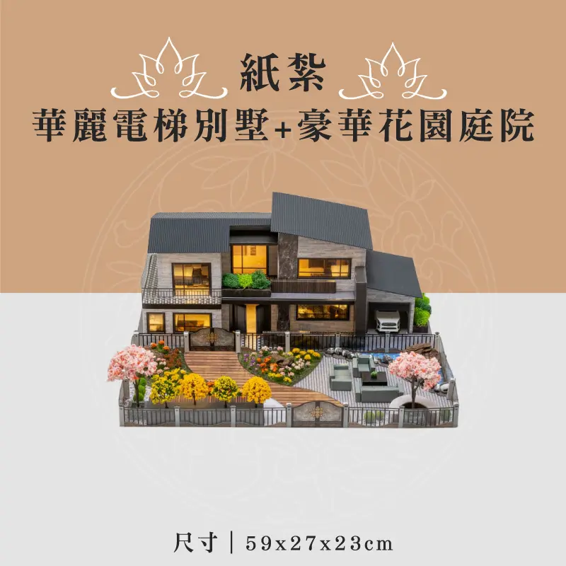 此款為:紙紮華麗電梯別墅+豪華花園庭院