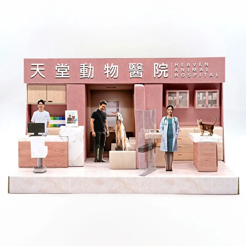 此款為:紙紮天堂動物醫院 ※材質:精緻紙材 ※台灣製造、品質優良可靠 ※紙紮用品附受用紙、封條 ※紙紮屋附地契、女僕、管家、司機 ※適用場地:自宅、棺內、金爐、殯儀館、火化場