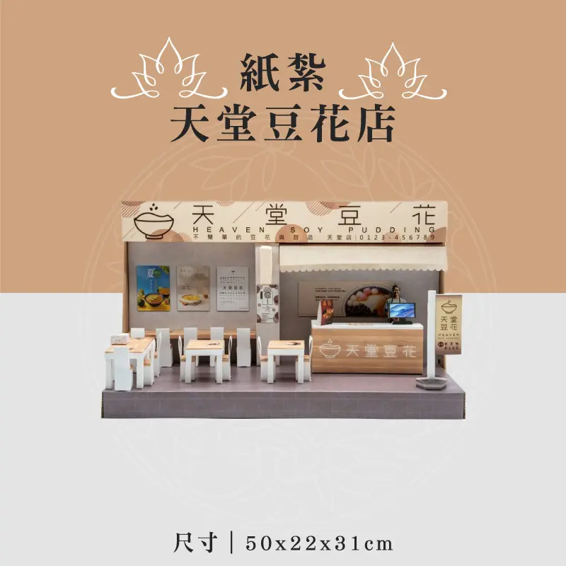 此款為:紙紮天堂豆花店 ※材質:精緻紙材 ※台灣製造、品質優良可靠 ※紙紮用品附受用紙、封條 ※紙紮屋附地契、女僕、管家、司機 ※適用場地:自宅、棺內、金爐、殯儀館、火化場