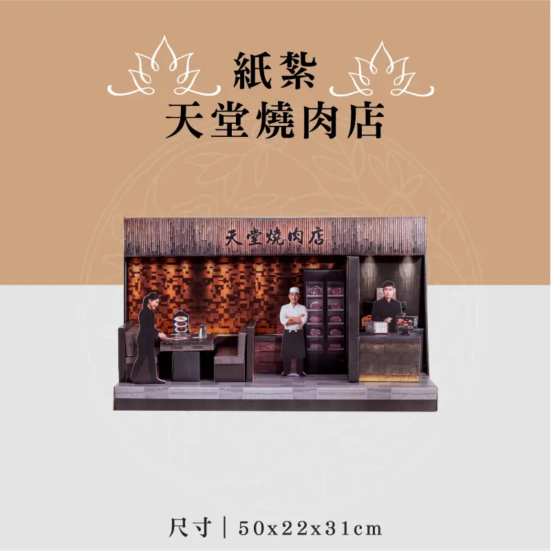 此款為:紙紮天堂燒肉店 ※材質:精緻紙材 ※台灣製造、品質優良可靠 ※紙紮用品附受用紙、封條 ※紙紮屋附地契、女僕、管家、司機 ※適用場地:自宅、棺內、金爐、殯儀館、火化場